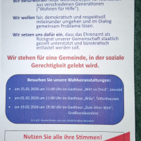Besuchen Sie unsere Wahlveranstaltungen: 25.01.2026: 11.00 Uhr im Gasthaus "Wirt von Dred", Jarezöd 01.02.2026: 11.00 Uhr im Gasthaus "Bräu", Tattenhausen 19.02.2026: 19.30 Uhr im Gasthaus "Zum Alten Wirt", Großkarolinenfeld